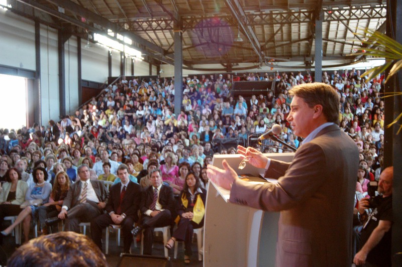 O governador Germano Rigotto participou, hoje (11) pela manhã, no Teatro Sancho Pança, no Armazém B do Cais do Porto, da entrega de 18 mil volumes de obras de Erico Verissimo às bibliotecas das escolas da rede pública estadual de ensino. A iniciativa foi viabilizada pelo Governo do Estado em parceria com a empresa Copesul. Foram distribuídos 3,35 mil kits contendo, cada um, seis livros do escritor e um display para exposição das obras. Doze títulos de Erico fazem parte do material doado. Os seis distribuídos em cada kit foram reunidos diferentemente, de acordo com a faixa de idade dos alunos que vão utilizá-los. Por decreto do Governo do Estado, 2005 é o Ano Erico Verissimo no Rio Grande do Sul, em homenagem ao centenário de nascimento do escritor gaúcho. Rigotto entregou os dois primeiros kits às diretoras das escolas Erico Verissimo (de Porto Alegre), Sílvia Regina Silva, e Nossa Senhora do Livramento (de Santana do Livramento), Ione Mendes Pereira. O governador agradeceu a contribuição da Copesul para o enriquecimento das bibliotecas escolares e ressaltou que o Rio Grande do Sul é uma referência nacional em cultura. Ao comemorar o fato de que a Feira do Livro de Porto Alegre deste ano ultrapassa os limites da Praça da Alfândega e chega até o Cais do Porto, também lembrou o crescimento que vem tendo a cada ano a Jornada Literária de Passo Fundo. Como exemplos da riqueza cultural gaúcha, o governador citou ainda o Festival de Cinema de Gramado, a Bienal do Mercosul (que se realiza neste momento na Capital), o Multipalco do Theatro São Pedro e o Museu Iberê Camargo, que deverão ser inaugurados, respectivamente, em setembro e outubro do próximo ano. O Rio Grande do Sul tem indicadores culturais melhores que o de outros estados, e isso é resultado de investimentos em educação e cultura, afirmou. Melhor ensino Participaram também da entrega o vice-governador Antonio Hohlfeldt, os secretários da Educação, José Fortunati, e da Cultura, Roque Jacoby, e o diretor-superintendente da Copesul, Luiz Fernando Cirne Lima. Fortunati homenageou os diretores de escolas, por sua dedicação, e recordou que o Rio Grande do Sul foi reconhecido pela Unesco, no ano passado, como o estado brasileiro com o melhor ensino público. Conforme o secretário, 88% das crianças e adolescentes gaúchos estudam em escolas públicas e 54% delas estão na rede estadual. Ressaltando a importância de as crianças e jovens aprenderem não apenas a ler, mas a entender e interpretar o que lêem, Fortunati sugeriu que no próximo ano, quando estará sendo comemorado o centenário de nascimento de Mario Quintana, haja também um esforço para a doação de obras do poeta às escolas. Também homenageando os professores, Cirne Lima falou sobre a responsabilidade do papel que desempenham e disse que a sociedade os reverencia por isso.