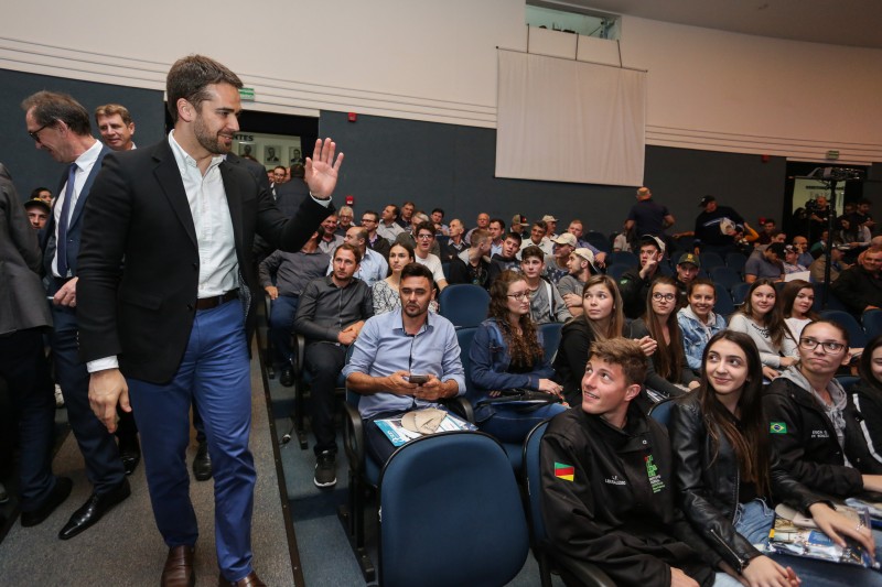 Ao público de aproximadamente mil pessoas, entre suinocultores independentes e integrados, representantes de cooperativas e agroindústrias, técnicos, veterinários, estudantes e autoridades, o governador Eduardo Leite falou sobre a responsabilidade do Executivo na cadeia produtiva.