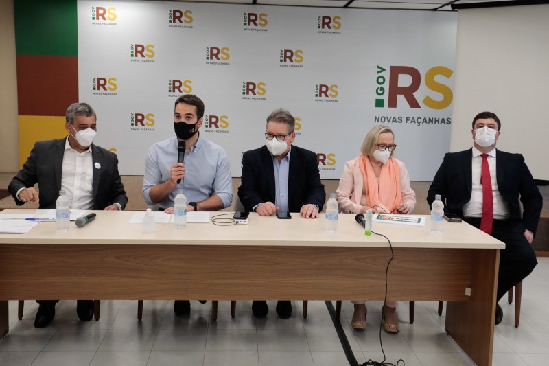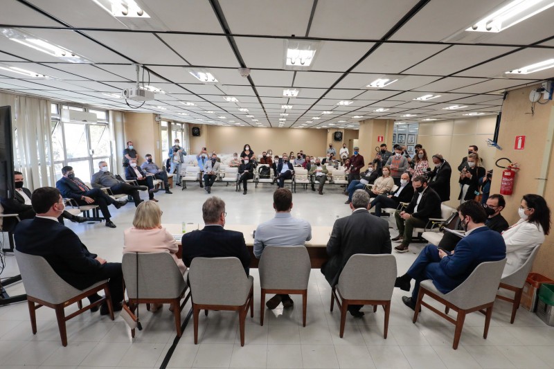 O encontro ocorreu no Centro Administrativo Fernando Ferrari (Caff), com a participação do vice-governador Ranolfo Vieira Júnior, da secretária da Saúde, Arita Bergmann, do chefe da Casa Civil, Artur Lemos Júnior, e do secretário de Apoio à Gestão Administrativa e Política, Agostinho Meirelles.