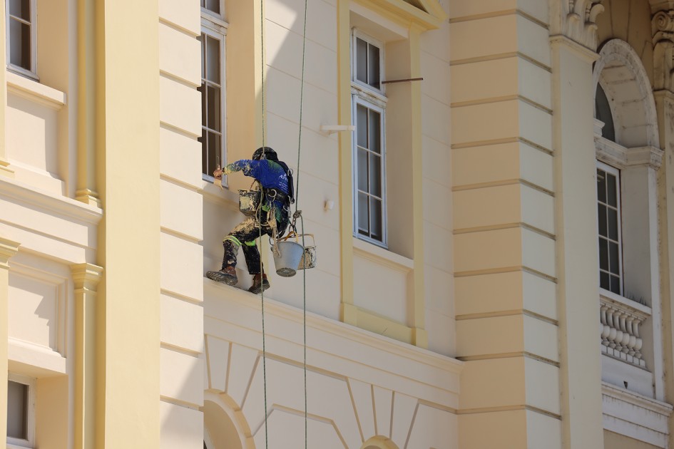 A intervenção prevê ainda a revitalização de todas as fachadas internas, dos revestimentos, dos ornamentos e das esquadrias. No total, serão 690 janelas restauradas, o que envolve a retirada de tinta, a aplicação de óleo para recuperação da madeira e a nova pintura. Mais de 200 já passaram pelo processo.