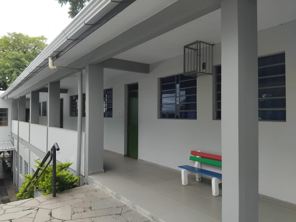 - Obra: substituição de portas; manutenção de janelas; recuperação de lajes, escadas e poço; troca de telhas; reconstrução de muro e de alambrado no acesso principal; adequações nas instalações elétricas e hidrossanitárias; e pintura interna e externa