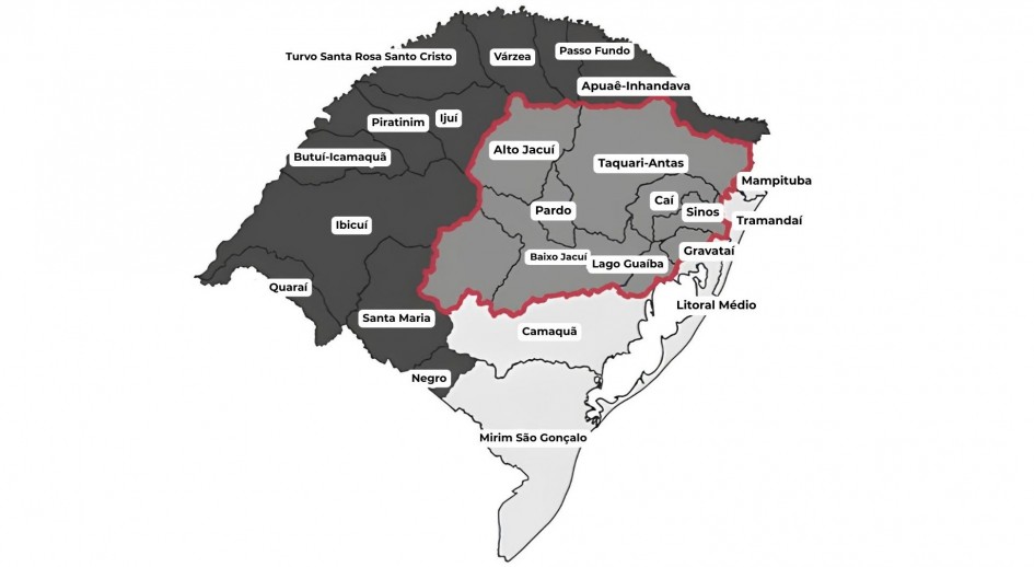 A região hidrográfica do Guaíba é composta por nove bacias e compreende 252 municípios.