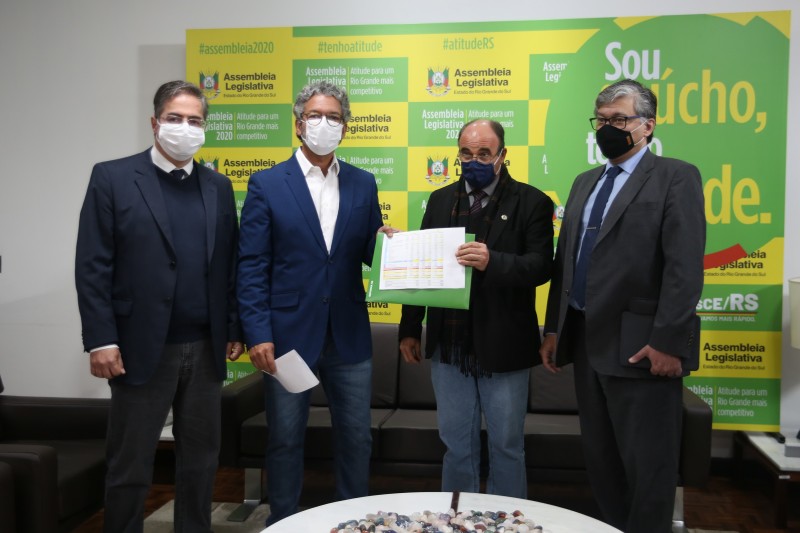O secretário adjunto da Casa Civil, Bruno Freitas, o subsecretário da Receita Estadual, Ricardo Neves Pereira, e o deputado Frederico Antunes entregaram a listagem na presidência da Casa, ao deputado Zé Nunes, para que seja disponibilizada aos presidentes das comissões que avaliam a Reforma: Comissão de Finanças, Planejamento, Fiscalização e Controle, presidida pelo deputado Luís Augusto Lara; Comissão de Economia, Desenvolvimento Sustentável e do Turismo, presidida por Sebastião Melo; além da Subcomissão mista, presidida pelo deputado Giuseppe Riesgo, que debate a reforma tributária estadual.