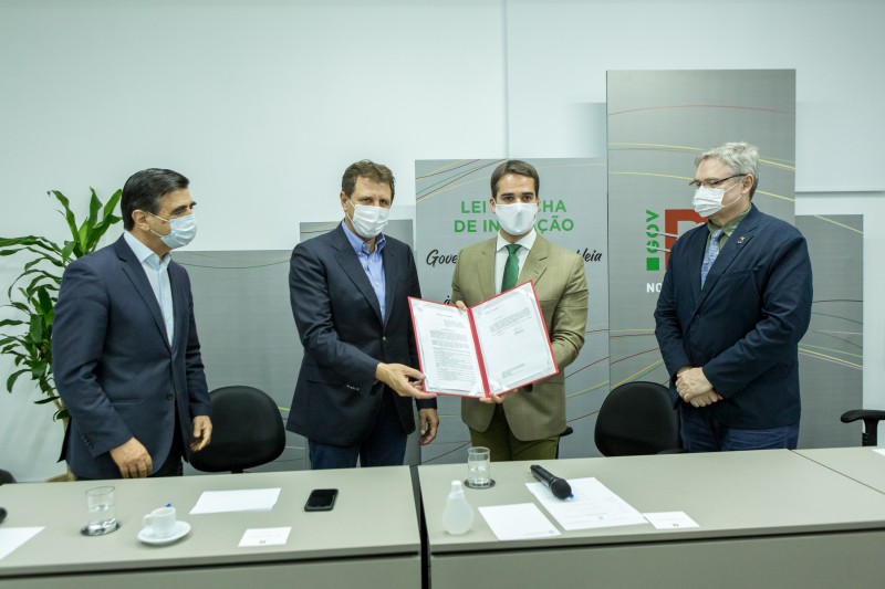 O governador Eduardo Leite e o secretário de Inovação, Ciência e Tecnologia, Luís Lamb, participaram, nesta quinta-feira (19/11), de evento para protocolar a Lei Gaúcha de Inovação (LGI). O projeto foi entregue, de forma simbólica, ao presidente da Assembleia Legislativa, deputado Ernani Polo.