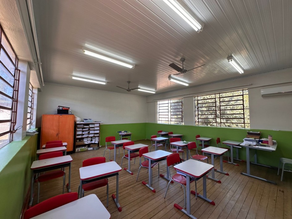 - Obra: recuperação das esquadrias, da cobertura, das instalações elétricas e hidrossanitárias, dos pisos, das paredes, dos forros, das pinturas, dos muros, das telas e do acesso escolar