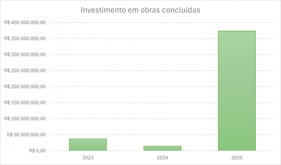 Os valores investidos e o número de obras concluídas vêm aumentando desde 2023. O governo passou a renovar espaços antes degradados, graças à recuperação da capacidade de investimento do Estado, implementada desde o primeiro mandato do governador Eduardo Leite. De janeiro a novembro de 2025, foram entregues 46 trabalhos, o dobro dos 23 de 2023. Em 2024, foram finalizados 31. Os recursos aumentaram significativamente: de R$ 37 milhões em 2023 para R$ 374 milhões neste ano.