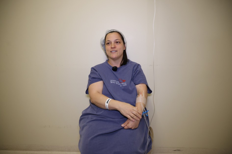 A paciente Andreia Potkowa aguardava pela cirurgia há um ano e nove meses após sofrer uma queda que ocasionou uma ruptura no joelho. Ela relata que já estava perdendo a esperança quando foi chamada pelo programa.