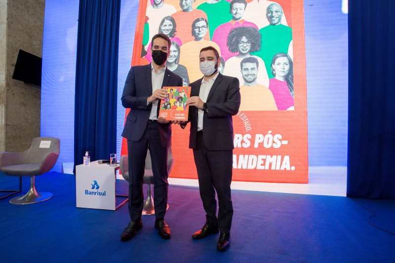 O governador Eduardo Leite recebeu do presidente da Assembleia Legislativa, Gabriel Souza, na tarde desta segunda-feira (24/1), a publicação intitulada A retomada baseada em evidências, que reúne estudos e pesquisas resultantes do projeto O RS Pós-Pandemia. A entrega ocorreu durante um evento realizado no Salão Júlio de Castilhos, na sede do Parlamento.