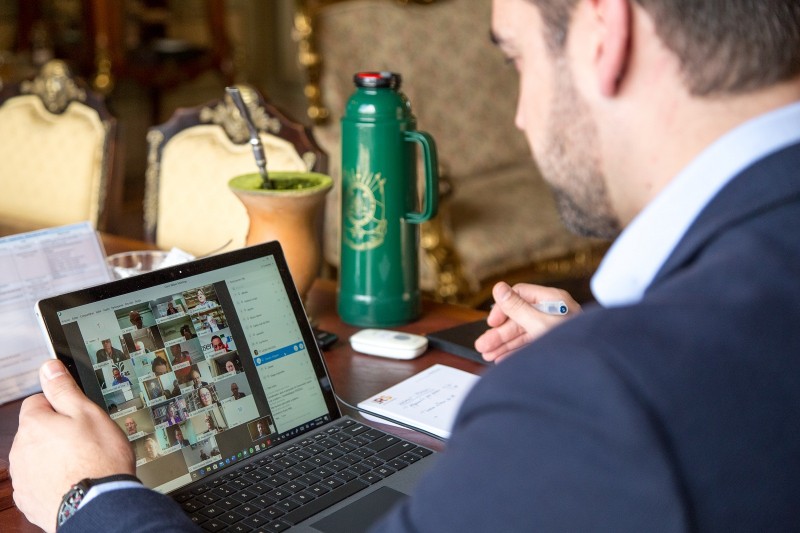 O governador Eduardo Leite se reuniu, por videoconferência no Palácio Piratini, com integrantes de todos os comitês de enfrentamento à epidemia de Covid-19. O encontro ocorreu na manhã desta quinta-feira (9/4).