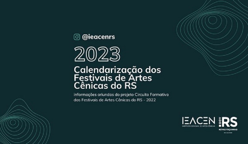 O Instituto Estadual de Artes Cênicas (Ieacen), instituição da Secretaria da Cultura (Sedac), organizou um calendário dos festivais de artes cênicas que serão promovidos no Rio Grande do Sul ao longo de 2023. O documento já pode ser acessado neste link ou no perfil do instituto no Instagram (@ieacenrs).