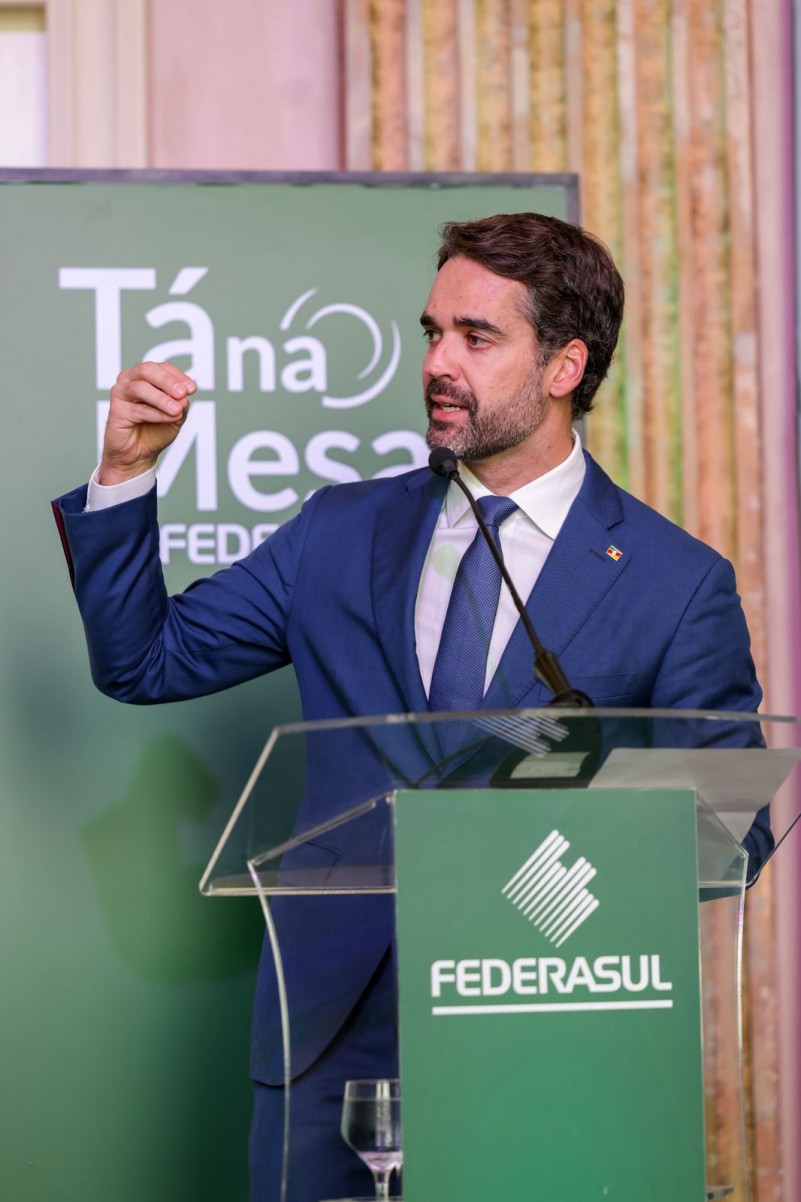 O governador Eduardo Leite afirmou nesta quarta-feira (18), em Porto Alegre, que o Rio Grande do Sul vive um novo momento após superar uma grave crise fiscal e avançar em diversas áreas da gestão pública. A comprovação foi apresentada com dados objetivos durante palestra na tradicional reunião-almoço Tá na Mesa, promovida pela Federação de Entidades Empresariais do Rio Grande Sul (Federasul).
