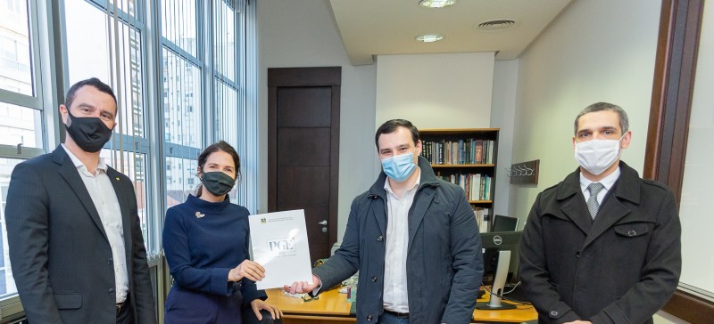 O procurador-geral do Estado, Eduardo Cunha da Costa, o secretário da Fazenda, Marco Aurelio Cardoso, e o procurador-geral adjunto para Assuntos Jurídicos, Victor Herzer da Silva, entregaram o planejamento de 2021 para a juíza Alessandra Abrão Bertoluci, da Central de Precatórios do Tribunal de Justiça. No encontro no TJ, destacaram o esforço conjunto das equipes da Secretaria da Fazenda e da PGE que fez com que, pelo segundo ano consecutivo, o valor das novas inscrições fosse substancialmente inferior aos valores pagos. Ano passado, o Executivo quitou ao redor de R$ 1,6 bilhão em precatórios.