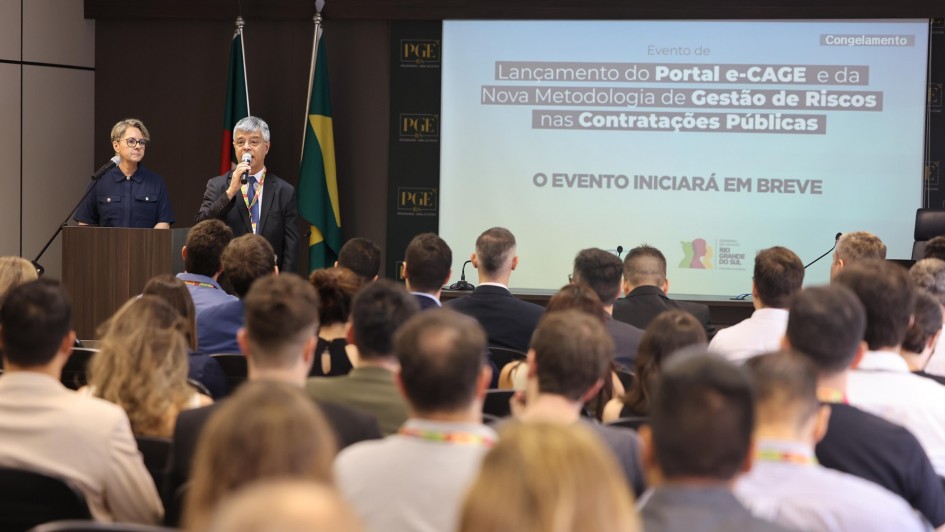 Servidores de todo o Estado acompanharam, na manhã desta sexta-feira (6/12), a apresentação da Nova Metodologia de Gestão de Riscos nas Contratações Públicas e o lançamento do Portal e-Cage pela Contadoria e Auditoria-Geral do Estado (Cage). As apresentações foram realizadas durante um seminário promovido pela Cage no auditório da Procuradoria Geral do Estado (PGE), em Porto Alegre.