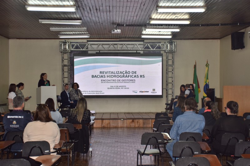 O encontro de gestores dos municípios inseridos nas bacias dos rios Gravataí e dos Sinos para apresentação do Programa Estadual de Revitalização de Bacias Hidrográficas ocorreu na tarde desta quarta-feira (31/8) no Auditório da Administração da Expointer. O evento foi promovido pelas secretarias do Meio Ambiente e Infraestrutura (Sema) e da Agricultura, Pecuária e Desenvolvimento Rural (Seapdr).