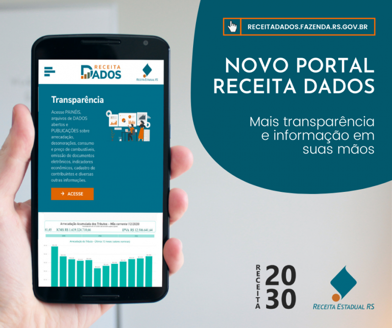 Visando ampliar a transparência e o acesso da sociedade às informações fiscais, a Receita Estadual disponibiliza o novo Receita Dados – http://receitadados.fazenda.rs.gov.br. Criado em 2017, o portal de transparência da Instituição passou por uma ampla modernização, com revisão da identidade visual e criação de novos painéis informativos, além de agora poder ser acessado de qualquer dispositivo.