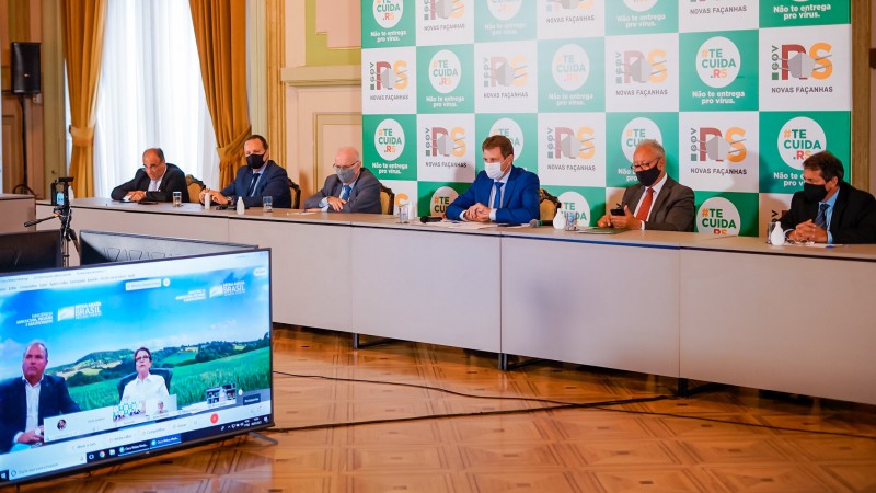 Coordenada pelo governador em exercício, deputado Ernani Polo, reunião no Palácio Piratini, com participação presencial e também por videoconferência de lideranças políticas, representantes setoriais, pesquisadores e instituições bancárias, tratou sobre a otimização das culturas de inverno para melhorar a competitividade do agronegócio gaúcho, principalmente da proteína animal.