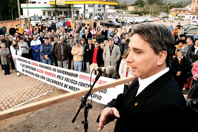 O governador Germano Rigotto inaugurou, nesta quarta-feira (28), a primeira rua pavimentada do município de Caraá, no Litoral Norte: a rua Lourenço C. Gomes. A obra, com 400 metros de extensão, custou R$ 186,9 mil e foi executada com recursos da Fundação Estadual de Planejamento Metropolitano e Regional (Metroplan), através do Programa Asfalto nas Ruas. Estes investimentos melhoram o acesso dos moradores, qualificam as vias urbanas para o transporte coletivo e, com isso, garantem à população melhor qualidade, afirmou o governador. Através do programa Asfalto nas Ruas já foram pavimentados 36,2 quilômetros de ruas em 26 municípios da Região Metropolitana e aglomerações urbanas do Litoral Norte, Nordeste, e Sul. O prefeito Nei Pereira dos Santos destacou a importância da obra para o município, afirmando que trata-se de mais uma melhoria implementada pelo Governo do Estado. Recebemos recursos para o RS/Rural e mais de R$ 340 mil de melhorias em prédios escolares, afirmou. O secretário da Habitação e Desenvolvimento Urbano, Vilmar Furini, disse que o Governo do Estado está empenhado em implementar melhorias não apenas nos grandes centros urbanos, mas em cidades do interior. A pavimentação representa um novo patamar na vida da população. Por isso, nossa secretaria investe permanentemente neste tipo de melhoria, disse. Participou da inauguração o superintendente da Metroplan, Nelson Lídio Nunes, e o deputado estadual Alceu Moreira, além do presidente da Associação dos Municípios do Litoral Norte, o prefeito de Torres João Alberto Machado Cardoso.