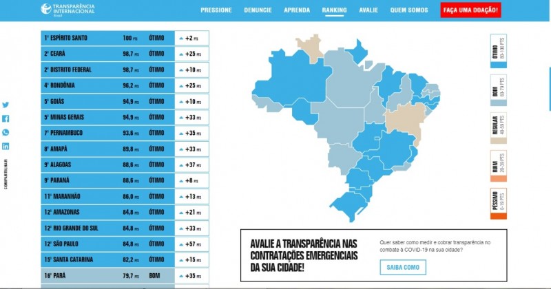 Como parte da estratégia de tornar o governo digital e ampliar a transparência em todas as ações, especialmente durante a pandemia, o Estado viu o empenho refletido na melhora no ranking de transparência sobre contratações emergenciais em resposta à Covid-19. Com relação à primeira avaliação, o Rio Grande do Sul passou de 19º lugar, em 21 de maio, para 12º no levantamento divulgado nesta segunda-feira (29/6) pela Transparência Internacional no Brasil.