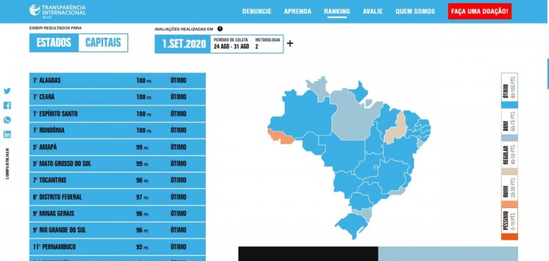 Os mais transparentes são aqueles que mais se aproximam da nota máxima. O estudo é elaborado e mensalmente e divulgado pela Transparência Internacional – Brasil.