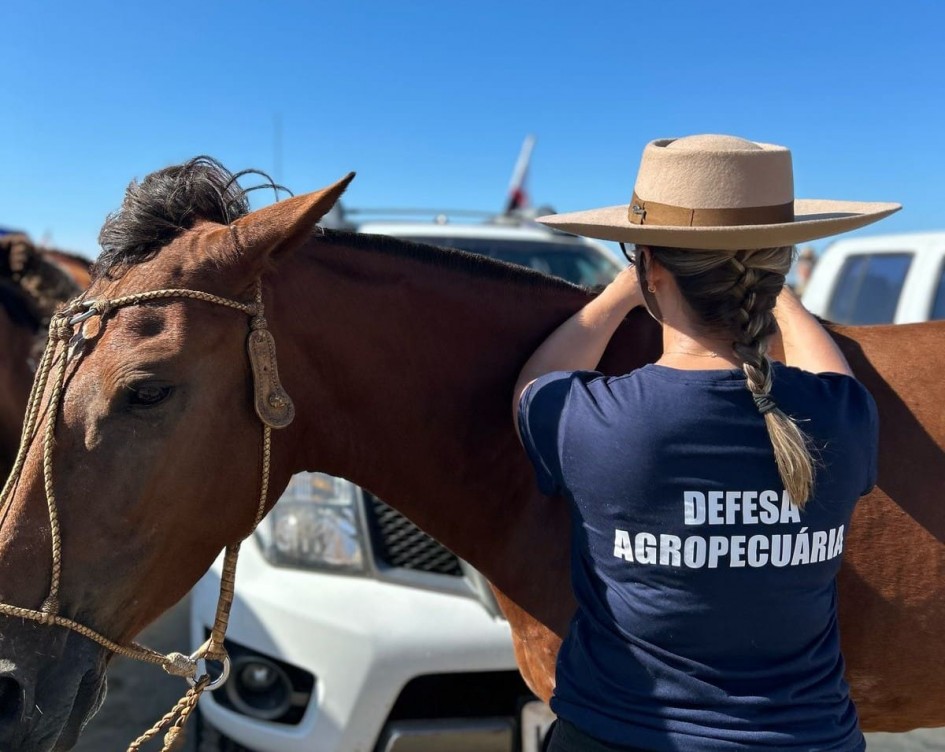 Luciana destacou que os servidores da secretaria acompanham o recebimento dos animais pelos médicos veterinários habilitados do evento, garantindo que somente os que cumprem as exigências sanitárias ingressem na cavalgada. “A equipe acompanha o deslocamento dos equídeos durante o percurso, fiscalizando as condições de bem-estar e o fornecimento de descanso e água para eles, além de evitar o ingresso de animais que não cumprem as exigências sanitárias – Guia de Trânsito Animal (GTA), exame negativo de Anemia Infecciosa Equina (AIE) e carteira ou atestado de vacinação contra influenza equina.”