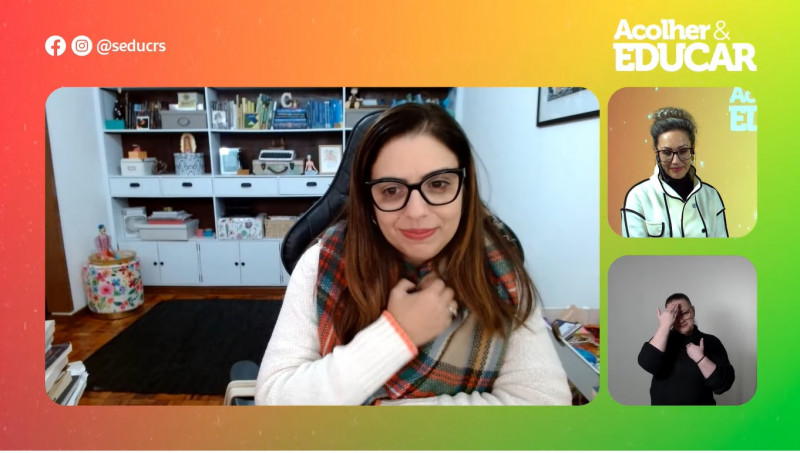 Dando sequência à série de ações de acolhimento e orientação da Secretaria de Educação (Seduc) junto da comunidade escolar, a segunda live do “Acolher e Educar” foi realizada na manhã desta quarta-feira (29/5). Intitulado “Escola Sensível ao Trauma”, o evento contou com a presença da secretária-adjunta de Educação, Stefanie Eskereski, da professora Letícia Grigoletto. A apresentação foi da professora Carolina Campos, fundadora do Vozes da Educação. A transmissão ocorreu no estúdio do Instituto de Educação General Flores da Cunha, em Porto Alegre.