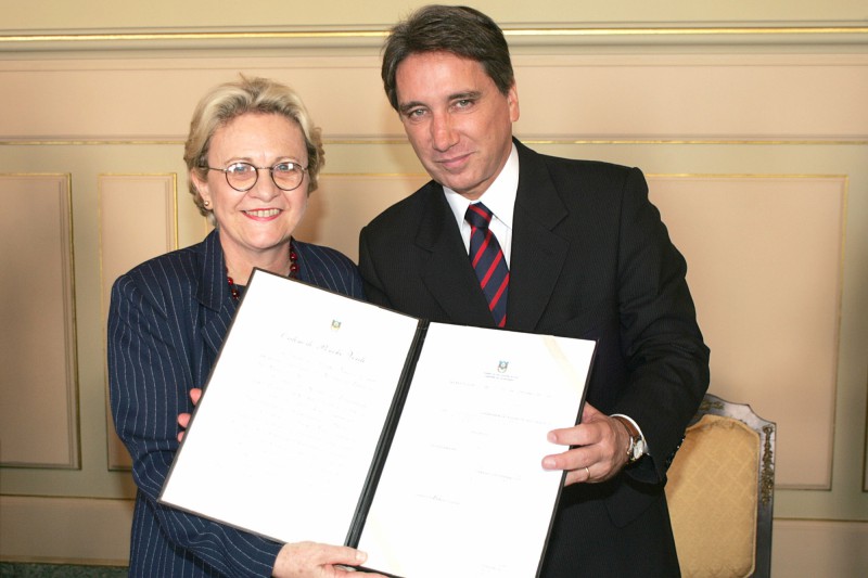 O governador Germano Rigotto entregou hoje (18), em solenidade no Salão Negrinho do Pastoreio, do Palácio Piratini, a comenda do Ponche Verde, no grau de Oficial, à ex-reitora da Universidade Federal do Rio Grande do Sul (Ufrgs), Wrana Panizzi. A comenda representa o carinho e o reconhecimento a quem tanto fez e fará pelo Estado, destacou Rigotto. A distinção, criada em 1972, é destinada a homenagear pessoas que se destacaram por suas ações e devotamento à causa do bem comum na qual tenham tido destaque. O governador hoje homenageia não uma autoridade, mas uma professora, uma servidora pública. Sem dúvida, com isso, dá uma demonstração de que acredita no futuro, com uma visão de estadista, disse Wrana ao ressaltar sua convicção na educação como bem público. A ex-reitora lembrou que esta é a primeira homenagem que recebeu sem estar ocupando um cargo de liderança. Rigotto observou que se graduou em Odontologia e Direito pela Ufrgs. Ao final da solenidade, Wrana Panizzi entregou ao governador um relatório sobre suas atividades ao longo de oito anos como reitora e o livro Universidade Pública, Gratuita e de Qualidade, de sua autoria. Participaram da homenagem o chefe da Casa Civil, Alberto Oliveira, o secretário do Desenvolvimento e dos Assuntos Internacionais, Luis Roberto Ponte, o reitor da Ufrgs, José Carlos Ferraz Henemann, o vice-preidente do Tribunal de Justiça, Wladimir Giacomuzzi, e professores universitários. Atuação Wrana Maria Panizzi é professora titular da Universidade Federal do Rio Grande do Sul, da qual foi reitora de 1996 a 2004. Licenciada em Filosofia e bacharel em Direito, é doutora em Urbanismo pela Universidade de Paris XII Cretéil e em Ciências Sociais pela Universidade de Paris I - Sorbonne. Em 2003, foi eleita presidente da Associação Nacional dos Dirigentes das Instituições Federais de Ensino Superior (Andifes), exercendo também o cargo de presidente do Fórum das Instituições de Ensino Superior do Estado do Rio Grande do Sul entre 1998 e 2004. De dezembro de 2000 a maio de 2001, foi presidente do Sebrae e, entre 1989 a 1991, da Fundação de Economia e Estatística.